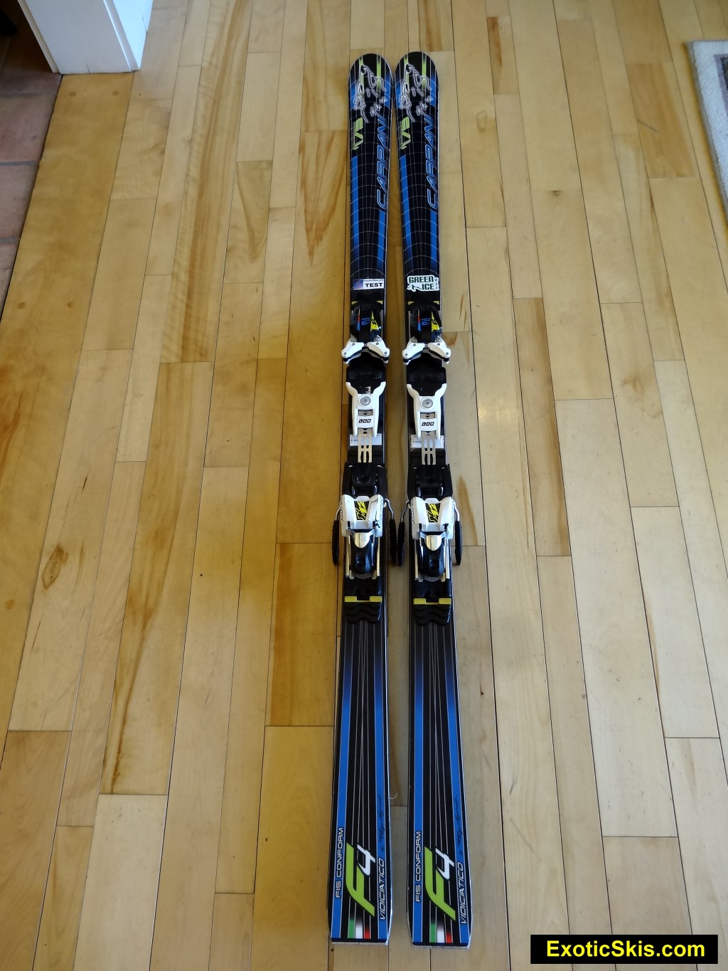 The Italian Carpani F4 Soft Race is a true thoroughbred competition GS ski handmade to order by Filippo Carpani, a master ski builder with a cult-like following throughout Europe.  Filippo will customize the flex of this model to your specifications for an additional fee, and provides various models with different shaping and construction to meet various demands of his clients.  For €599 , it's a great bargain if you want a small-run, hand-made race ski with Italian heritage.  This "Soft" version is more skiable by mid-to-lightweight skiers than the full-on FIS race version and can be used for recreational technical carving on hard surfaces as well as GS racing.  This version did not have the "Activa Race" arm attachments offered by Carpani.  The F4 Soft Race is a true technical GS tool with high-precision, dampened handling and super control at speeds.  It takes a bit of speed to get the F4 Soft to engage enthusiastically, but much less than the full-race version of the F4, making it ideal for younger racers or lighter race enthusiasts.  Tracking behavior through gnarly, hard surfaces is superbly quiet and controlled, with a strong, but not overwhelming acceleration at the end of the turn if you load the ski and release it.  The Carpani F4 Soft Race is a great ski for aspiring racers or lighter racers who need control and accuracy to improve their technique and results more than pure power and acceleration.